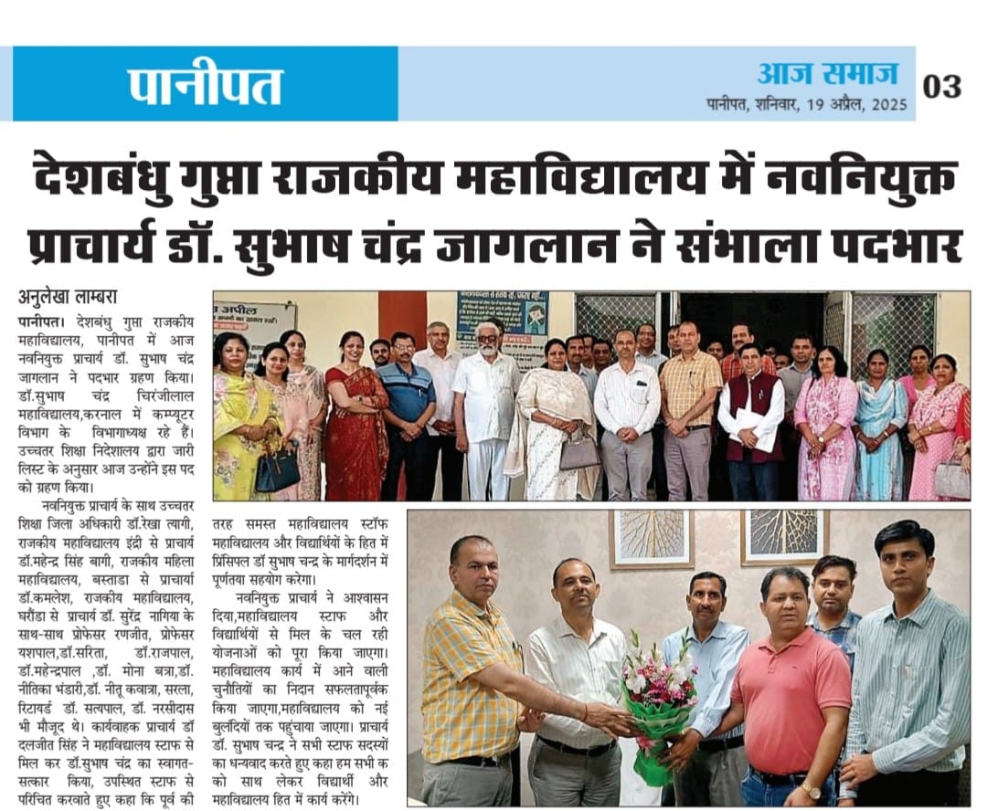 Got 1st prize in Declamation Contest organised by Arya College Panipat amongst ...